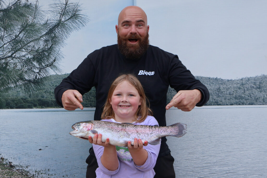 Kinsley Newton brought in a pair of rainbow trout off shore near the main marina using green PowerBait, they weighed in at 3 pounds and 4 pounds… which means she’s a tough girl lifting a heavy brag board! Phil and Andre reeled in a nice lightning trout using a dropshot rig down by the dam.