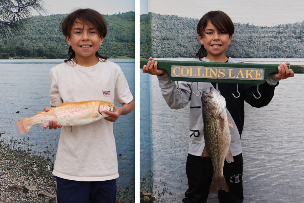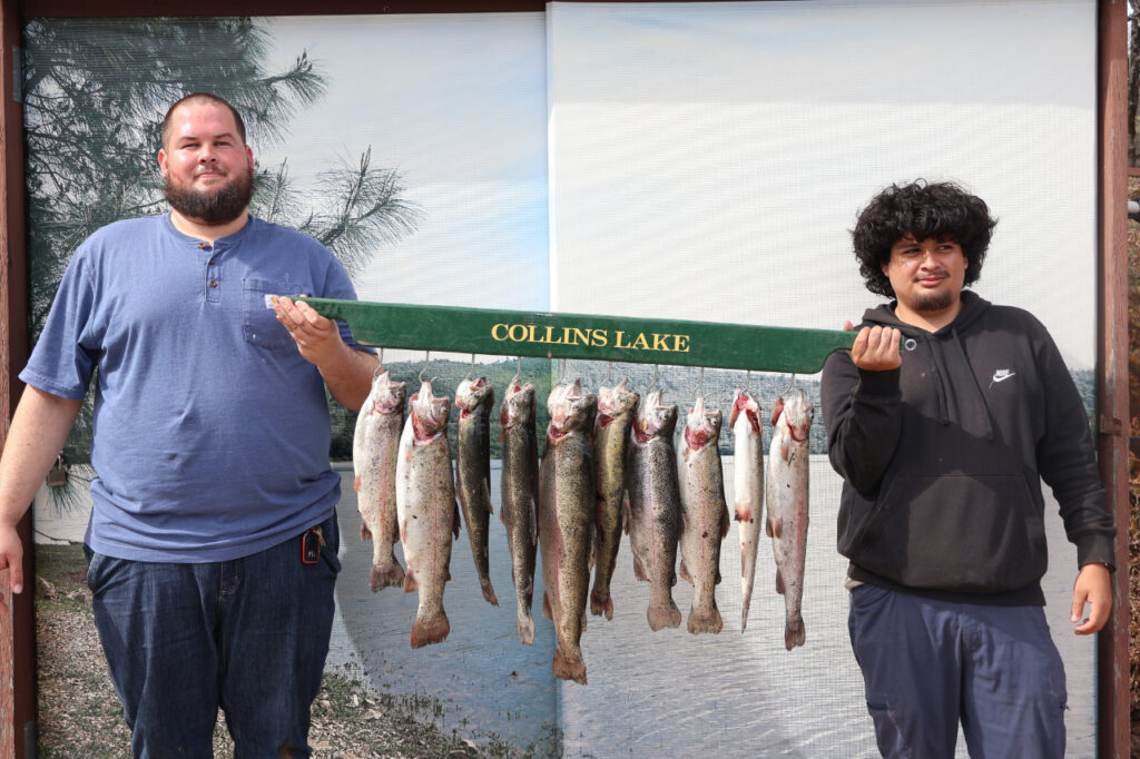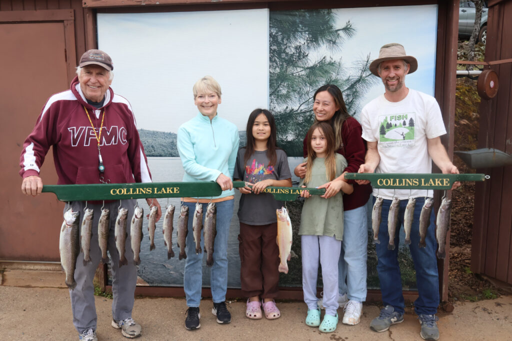 Lesley Bennett and the Kraiss Family caught a triple limit as well as a Collins Lake Lightning Trout. Even with the surface temperature as high as it is we’re still seeing many trout caught along the shoreline. In fact Tom Chissie caught this 5.5lb rainbow using PowerBait, right out of his campsite!