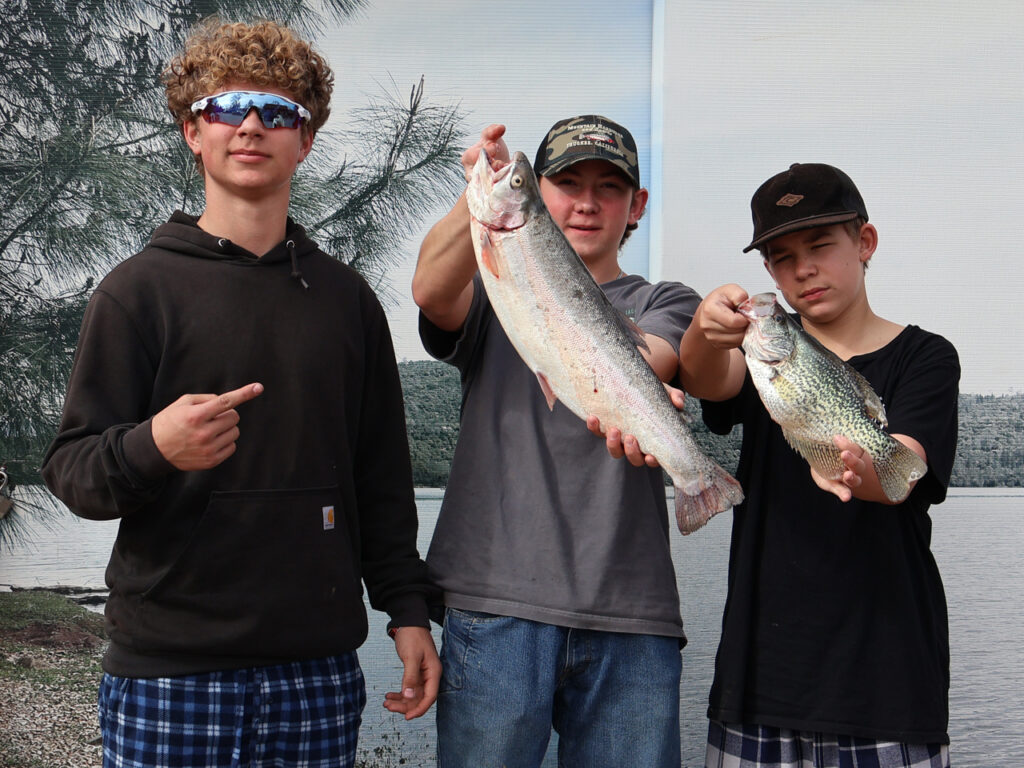 Matthew, Carl & Parker reeled in a big rainbow trout and a good sized crappie caught across the lake using Kastmasters.