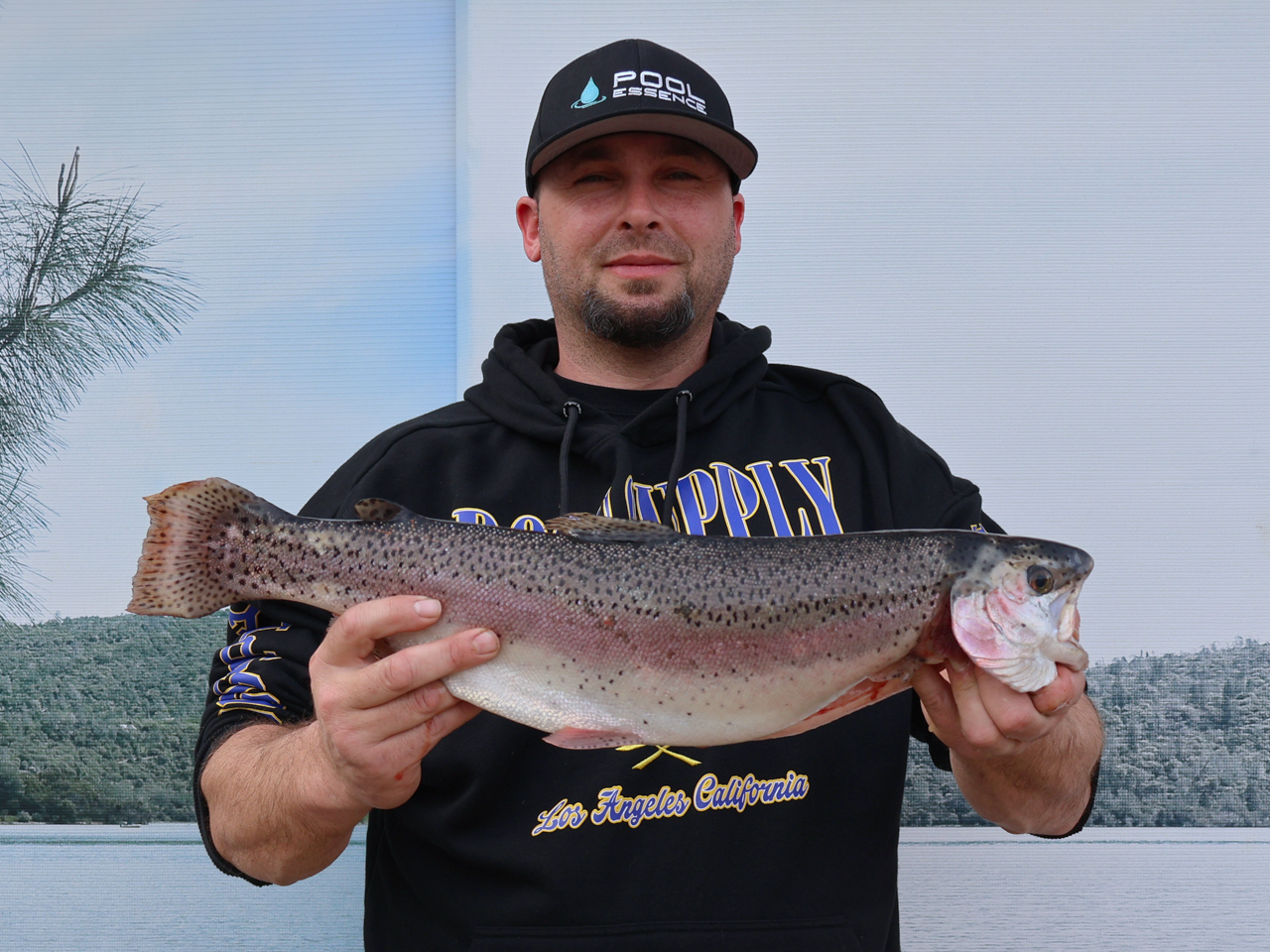 Jerry Adkins of Penn Valley holding out his 5lb Rainbow Trout using Garlic PowerBait by the Beach!
