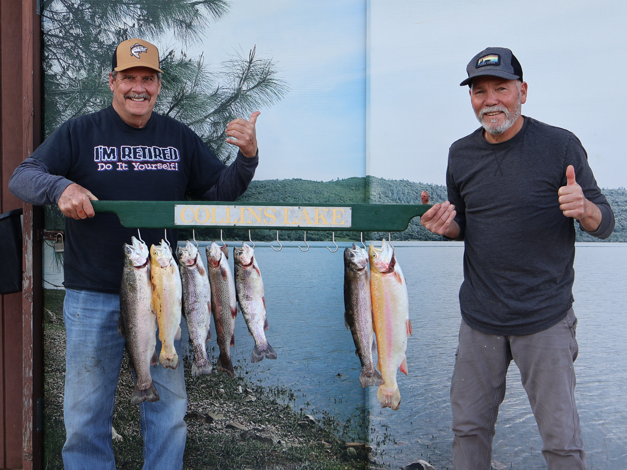 Mitch Ralston and Steve Hulse of Foresthill caught 8 rainbow trout, the biggest weighing in at over six pounds fishing from a boat out near the buoy line along the main channel using orange trolling flies.